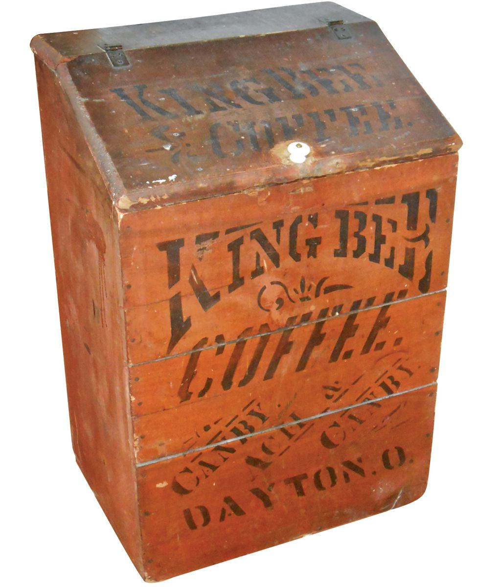 Country Store Coffee Bin King Bee Coffee Slanted Hinged Lid Wood W Great Stenciled Front Canby